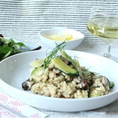 Arroz italiano con champiñones, calabacita y tocino